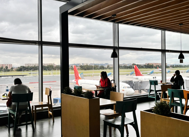 Disfruta de la variedad de opciones gastronómicas en la plazoleta de comidas Mangle mientras observas el movimiento de los aviones, un espacio pensado para comer con una vista exclusiva.