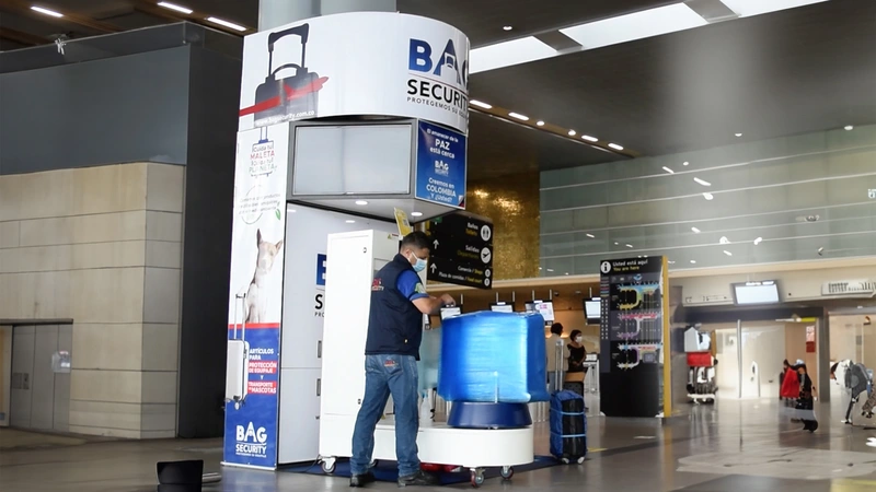 Le service d’emballage des bagages de l’aéroport permet de protéger les valises grâce à un procédé de scellage qui aide à prévenir les dommages, les vols ou les ouvertures pendant le voyage.